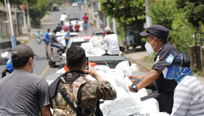 Dijeron las autoridades, que los agentes policíales brindan seguridad y apoyan la entrega de los paquetes de víveres en los caseríos y cantones de diferentes municipios, además se mantienen trabajando en todo el país, con el propósito de evitar la propagación de esta enfermedad.